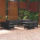 vidaXL Loungegrupp för trädgården med dynor 11 delar svart massiv furu 3096867