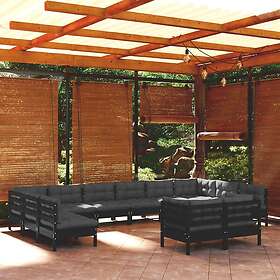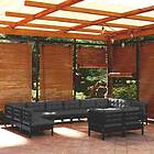 vidaXL Loungegrupp för trädgården med dynor 12 delar svart massiv furu 3097275