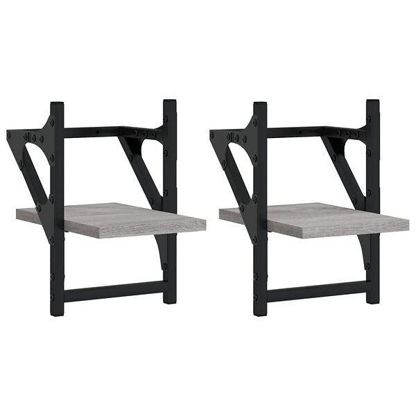 vidaXL Vägghyllor med stänger 2 st grå sonoma 20x25x30 cm 836231