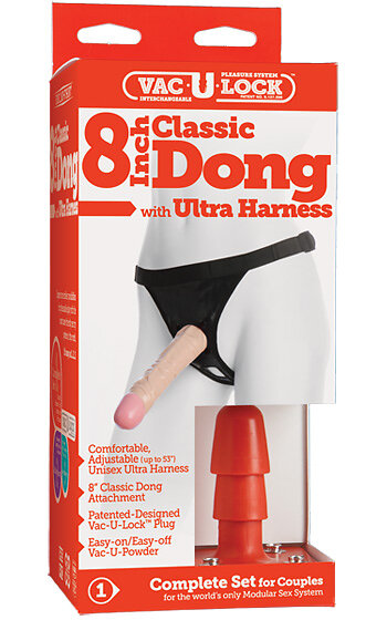 Vac-U-Lock Classic Dong With Ultra Harness 8inch