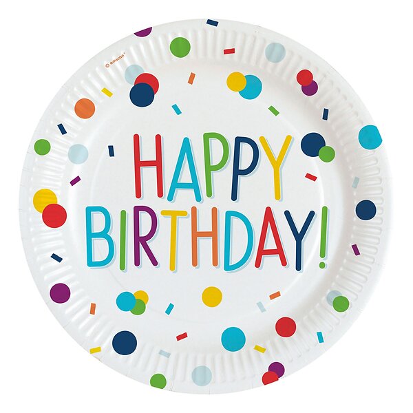 Papperstallrikar Happy Birthday Konfetti 8-pack