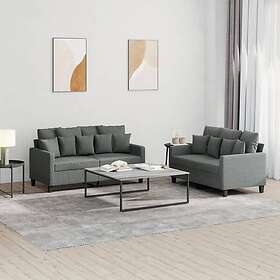 vidaXL Soffgrupp med dynor 2 delar Mörkgrå tyg 3201649