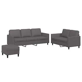 vidaXL Soffgrupp med dynor 3 delar grå konstleather 3201767