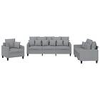 vidaXL Soffgrupp med kuddar 3 delar ljusgrå tyg 3201632