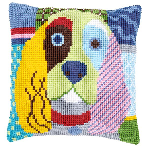Broderikit Kuddfodral Korsstygn på målad duk Modern Dog 40 x 40 cm Vervaco