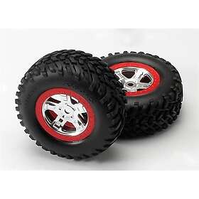 Traxxas 5973A Däck & Fälg SCT/SCT Krom-Röd (14mm) (2)