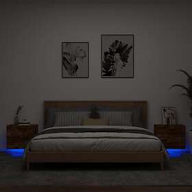 vidaXL Väggmonterade sängbord med LED-lampor 2 st rökfärgad ek 836821