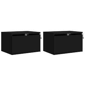 vidaXL Väggmonterade sängbord med LED-lampor 2 st svart 836829