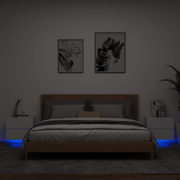 vidaXL Väggmonterade sängbord med LED-lampor 2 st vit 836813