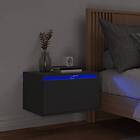 vidaXL Väggmonterat sängbord med LED-lampor svart 836828