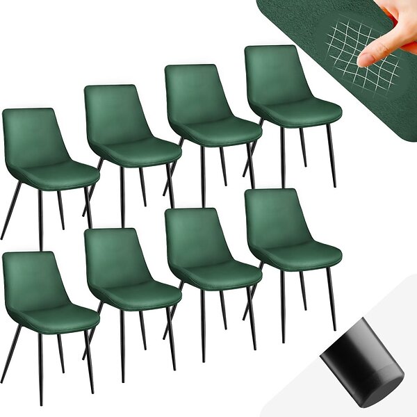 TecTake Set med 8 stolar i sammetslook Monroe mörkgrön