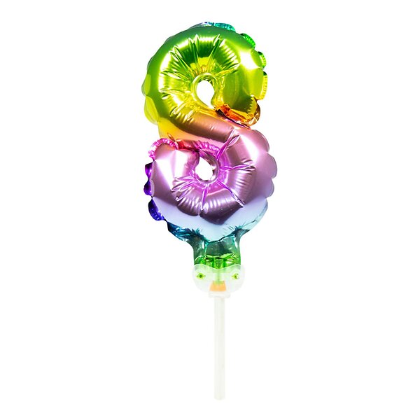 Sifferballong Tårtdekoration Regnbåge Metallic Siffra 8