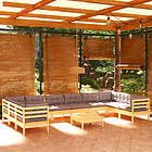 vidaXL Trädgårdssoffa 11-sits med grå dynor massiv furu 3097336