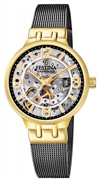 Festina F20580/2 Ladies Gold/Black-Toned Skeleton Auto Watch