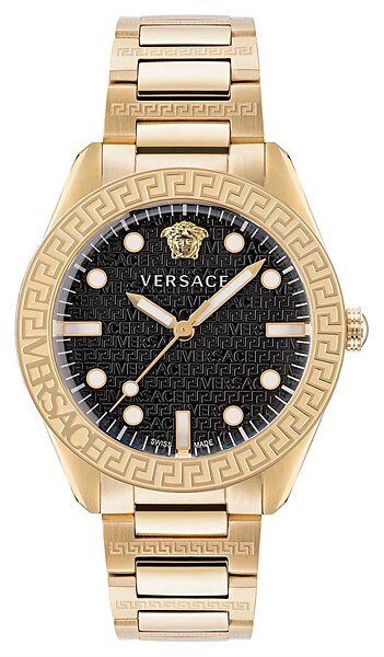 Versace VE2T00522 GRECA DOME (42mm) Black Dial Gold PVD Watch