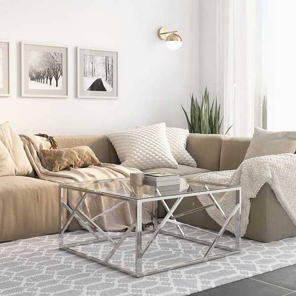 vidaXL Tables Basses silver rostfritt stål och härdat verre 349945