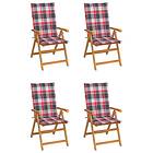 vidaXL Trädgårdsstolar med dynor rött rutmönster 4 st massiv teak 3065543