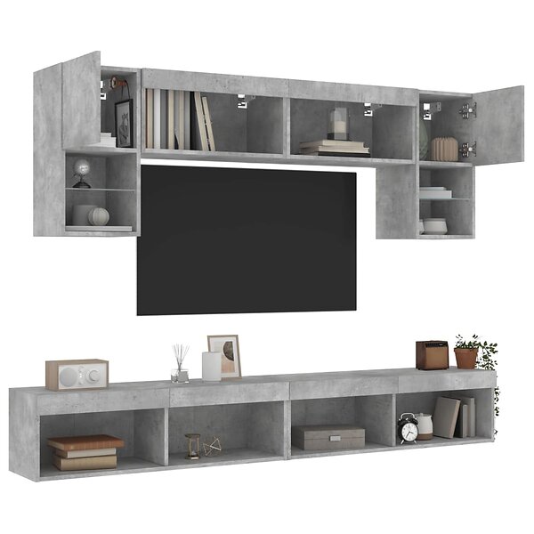 vidaXL Support TV 6 delar LED betonggrå konstruerat trä 3216707