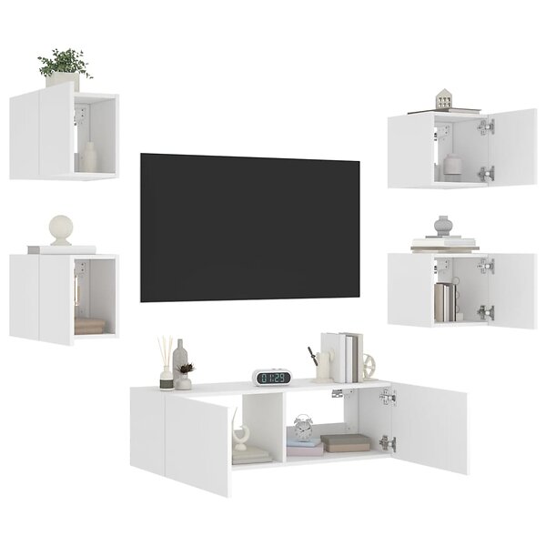 vidaXL Väggmonterade tv-skåp 5 delar med LEDs vit 3216860