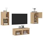 vidaXL Väggmonterade TV-skåp 4 delar med LEDs sonoma-ek 3216571