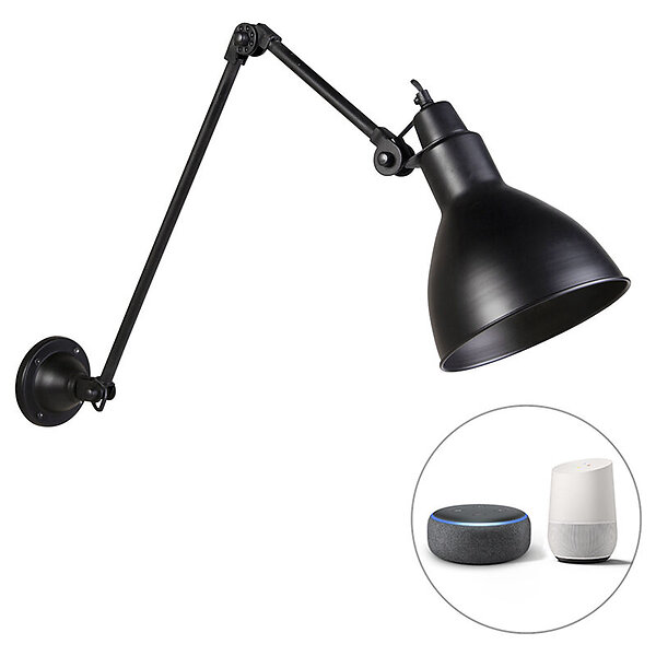 Qazqa Smart vegglampe sort justerbar inkl. Wifi A60 Wye