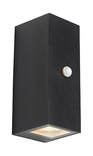 Qazqa Vegglampe sort 2-lys IP44 med bevegelsessensor Baleno
