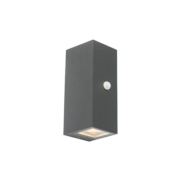 Qazqa Vegglampe mørkegrå 2-lys IP44 med bevegelsessensor Baleno