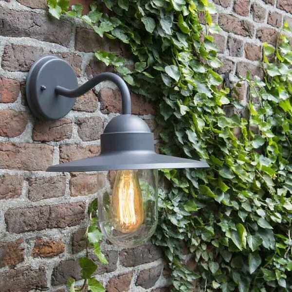 Qazqa Landlig utendørs vegglampe mørkegrå IP44 Kansas