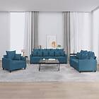 vidaXL Soffgrupp med dynor 3 delar blå sammet 3201689