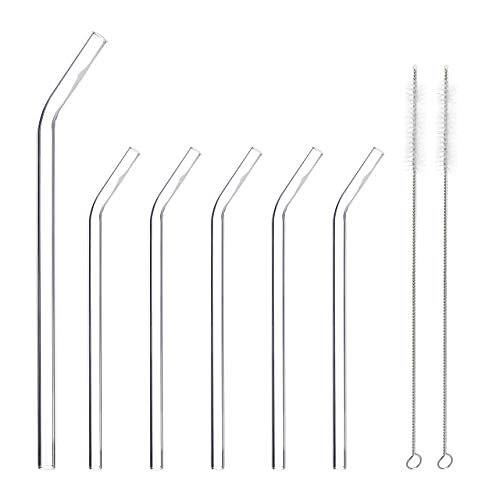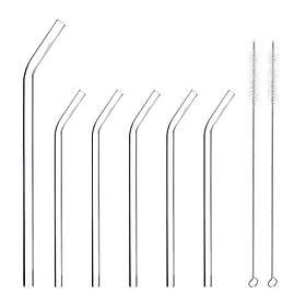 Relaxdays 10029999_1210 glas dryckessugrör set med 6, böjda, återanvändbara, rengöringsborste, 23 cm, hållbar, Ø 10 mm, genomskinlig, rostfr