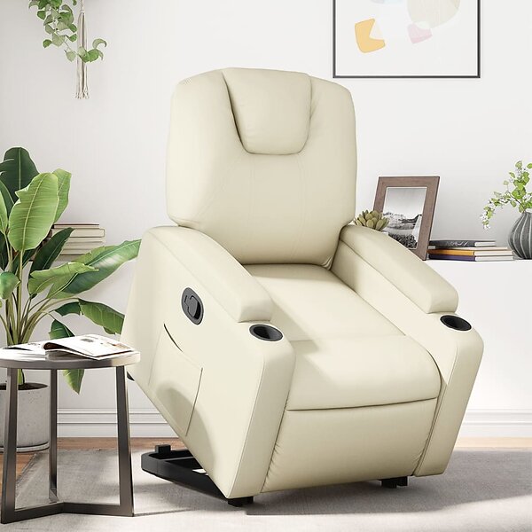 vidaXL Reclinerfåtölj med uppresningshjälp gräddvit konstläder 3204431