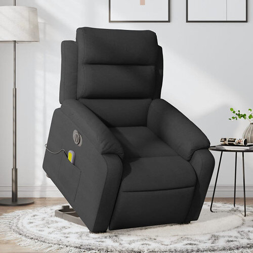 vidaXL Elektrisk massagefåtölj med uppresningshjälp svart tyg 3205018
