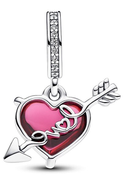Pandora Moments Red Heart & Arrow Murano Glass Dangle Charm Sterling silver berlock 793085C01