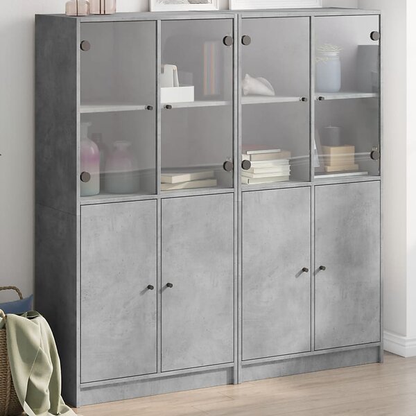 vidaXL Bokhylla med dörrar betonggrå 136x37x142 cm konstruerat trä 3206527