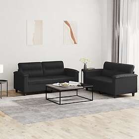 vidaXL Soffgrupp med dynor 2 delar svart konstleather 3202362