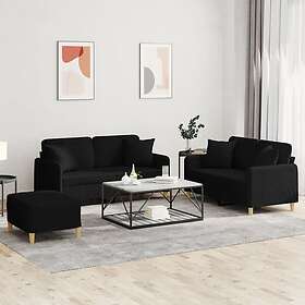 vidaXL Soffgrupp med kuddar 3 delar svart tyg 3202114