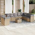 vidaXL Loungegrupp för trädgården m. dynor 11 delar beige konstrotting 3217869