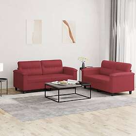 vidaXL Soffgrupp med dynor 2 delar Vinröd konstleather 3202365