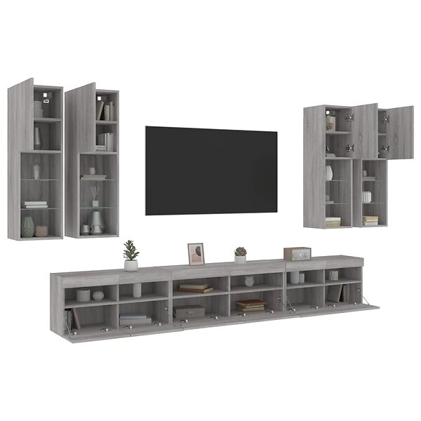 vidaXL Väggmonterade tv-skåp 7 delar med LEDs grå sonoma 3216783