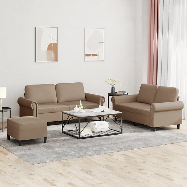vidaXL Soffgrupp med dynor 3 delar cappuccino konstläder 3202159