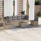 vidaXL Matgrupp för trädgården med dynor 7 delar beige konstrotting 3249218