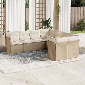vidaXL Matgrupp för trädgården med dynor 8 delar beige konstrotting 3218588