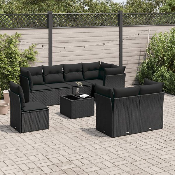 vidaXL Loungegrupp för trädgården m dynor 9 delar svart konstrottning 3217935