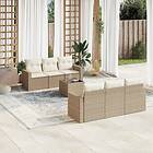 vidaXL Matgrupp för trädgården med dynor 7 delar beige konstrotting 3218698