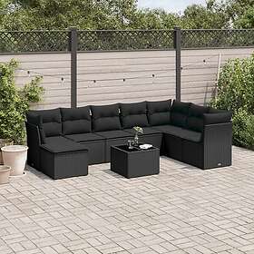 vidaXL Loungegrupp för trädgården m dynor 9 delar svart konstrottning 3218055