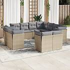 vidaXL Loungegrupp för trädgården m. dynor 11 delar beige konstrotting 3218509