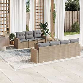 vidaXL Matgrupp för trädgården med dynor 8 delar beige konstrotting 3218719