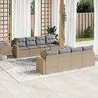 vidaXL Soffgrupp för trädgården med dynor 9 delar beige konstrotting 3218739