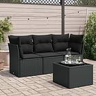 vidaXL Soffgrupp för trädgård med dynor 4 delar svart konstrotting 3217215