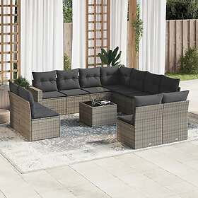 vidaXL Soffgrupp för trädgården 12 delar med dynor grå konstrotting 3219130